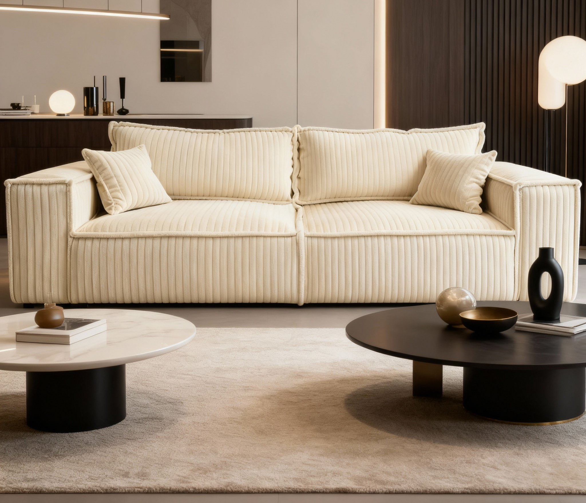 Dlaczego warto wybrać kanapę NOVU10 w tkaninie TILIAKanapa z funkcją spania NOVU10 w tkaninie TILIA to połączenie nowoczesnego designu, wysokiego komfortu oraz wyjątkowo przyjemnej w dotyku tapicerki. Model o szerokości 255 cm doskonale sprawdzi się w salonie jako główny mebel wypoczynkowy, oferując jednocześnie pełnowartościowe miejsce do spania. Tkanina TILIA marki DAVIS wyróżnia się szerokimi pasami inspirowanymi sztruksem, które są wyraźnie szersze i bardziej miękkie od klasycznego sztruksu, co przekłada się na jeszcze wyższy komfort użytkowania. |