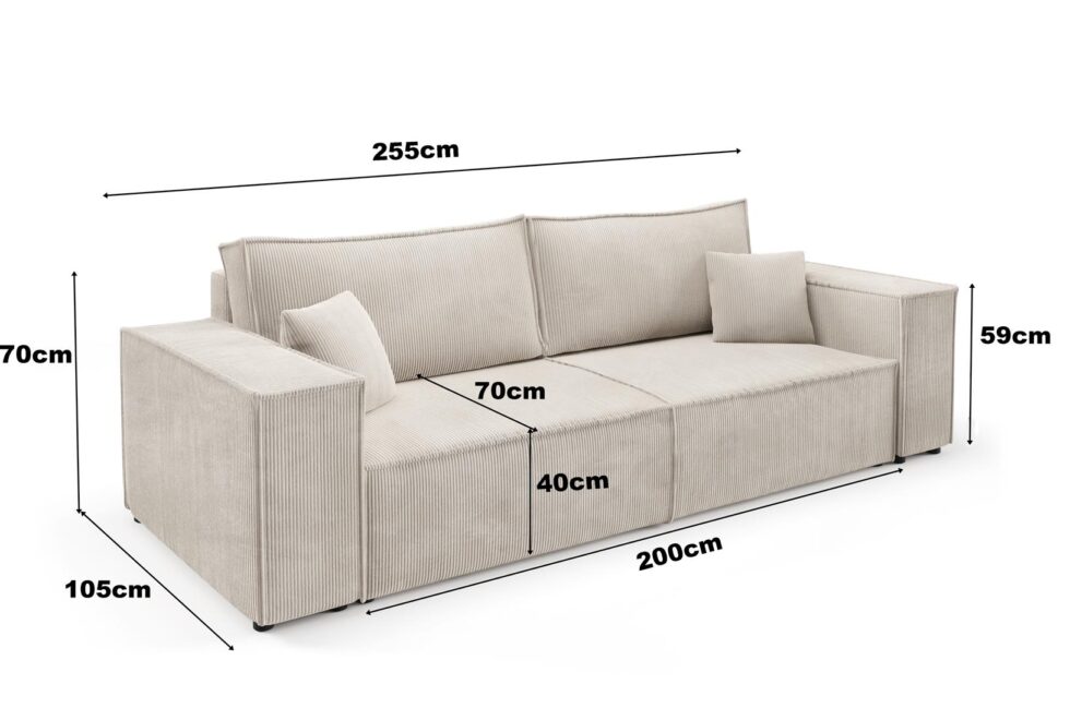 Kanapa z funkcją spania NOVU10 255×105 – tkanina TILIA
