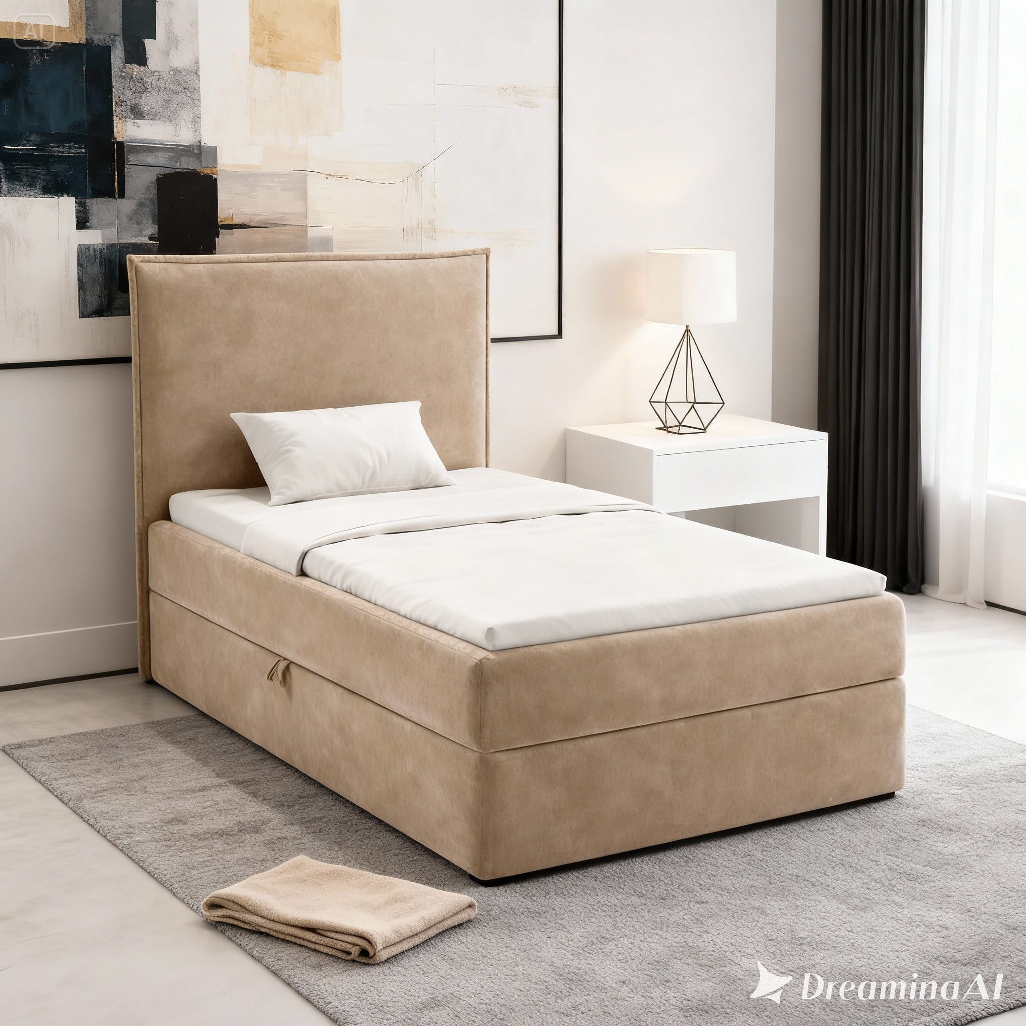 Łóżko kontynentalne MINI NOVU 70x200 z pojemnikiem – jednoosobowe welur
