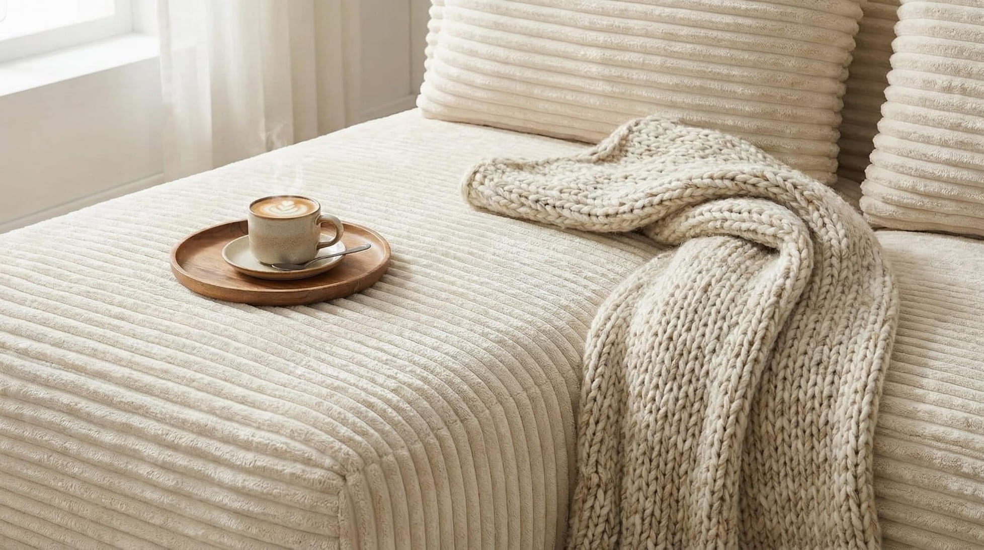 Tkanina TILIA to jeden z najchętniej wybieranych materiałów w tym sezonie. Jej szerokie, miękkie pasy inspirowane klasycznym sztruksem nadają narożnikowi wyjątkowy wygląd typu soft / cozy / modern.