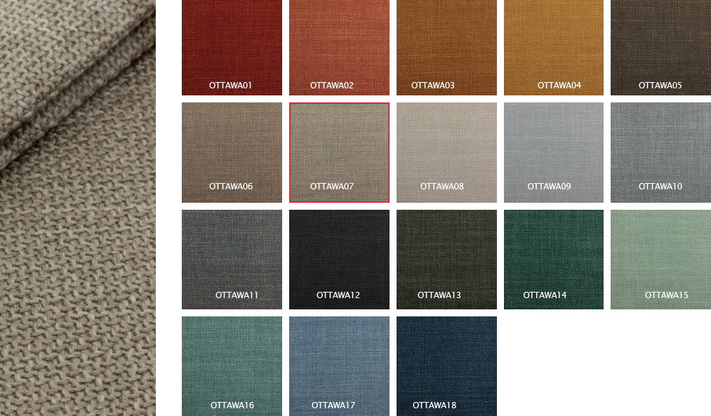 Dostępny w najmodniejszych tkaninach POSO petfriendly (sztruks), ABRIAMO BOUCLE (baranek), WELUR hydrofobowy oraz petfriendly (AMON, monolith) oraz OTTAWA (plecionka)