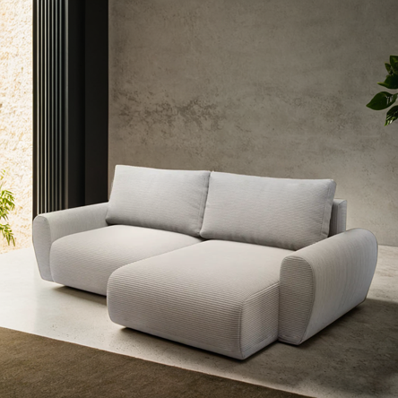 Narożnik nowoczesny POSTEK rozkładany funkcja spania sztruks boucle welur automat pojemnik na pościel L-kształt 255x148 cm LEWY/PRAWY