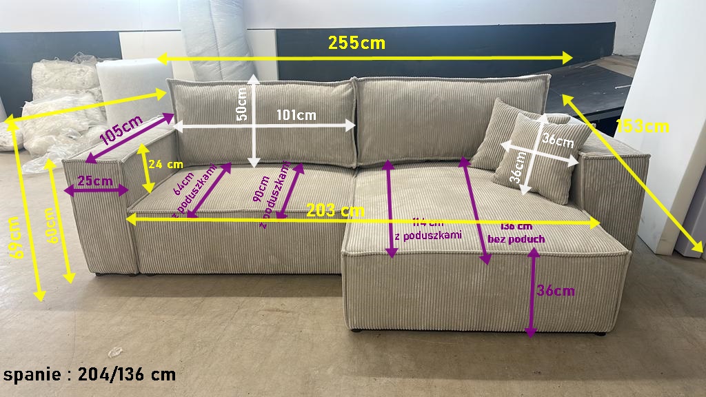 Narożnik rozkładany MAROKO funkcja spania sztruks automat pojemnik na pościel L-kształt 255x153x69