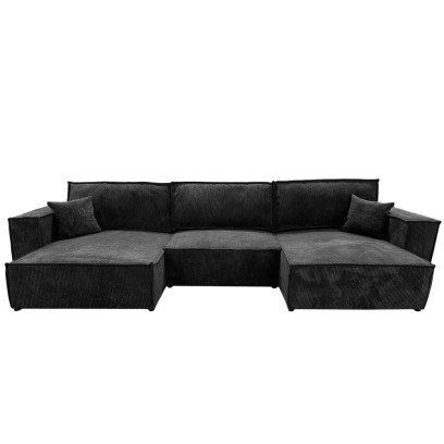 Narożnik rozkładany NOVU U funkcja spania sztruks automat pojemnik na pościel U-kształt CZARNY