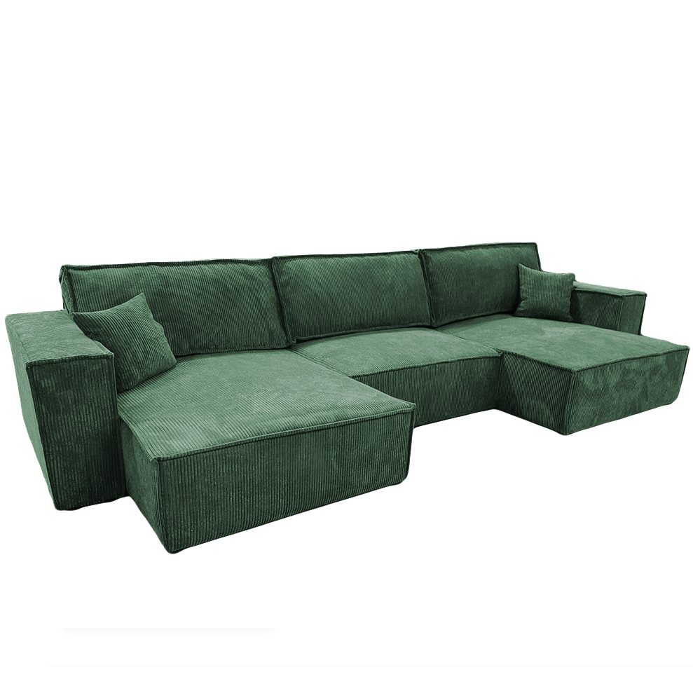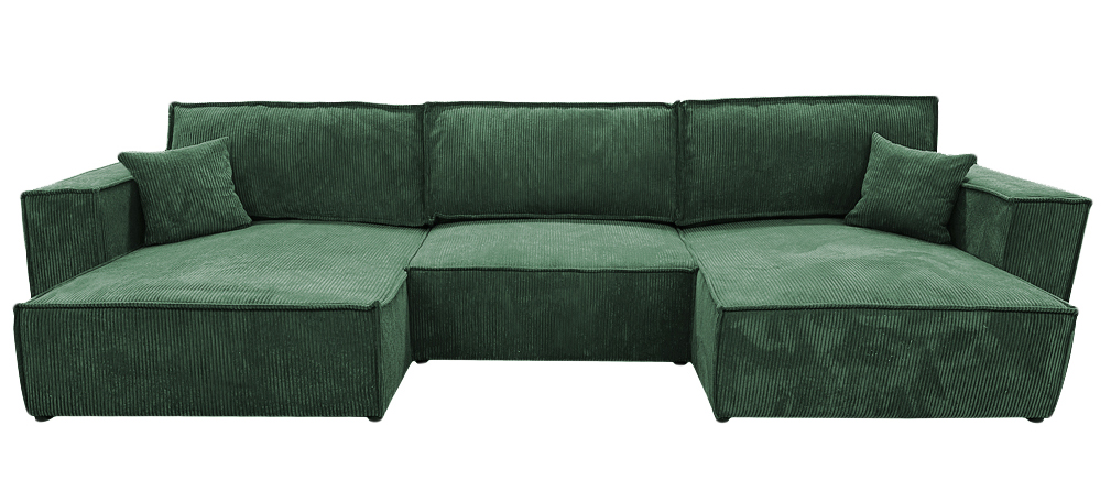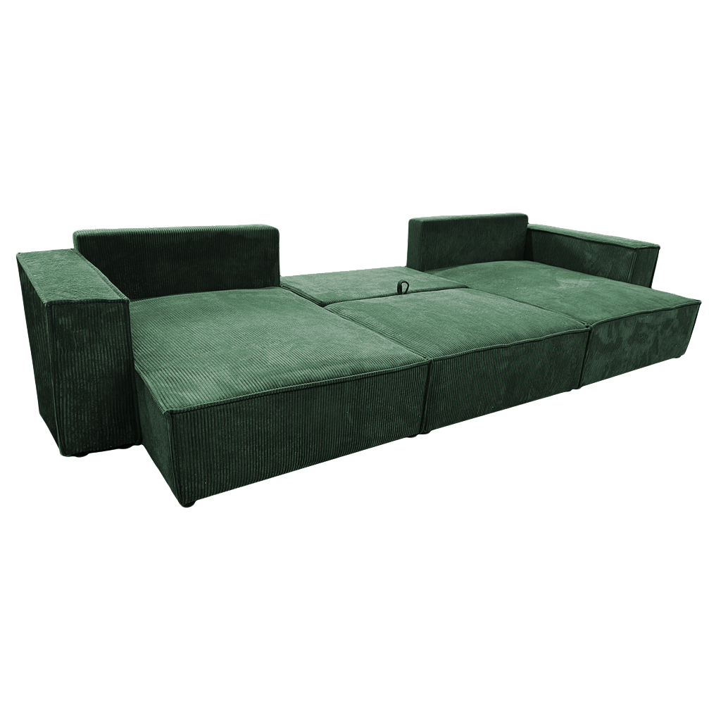 Narożnik rozkładany NOVU U funkcja spania sztruks automat pojemnik na pościel U-kształt ZIELONA BUTELKA