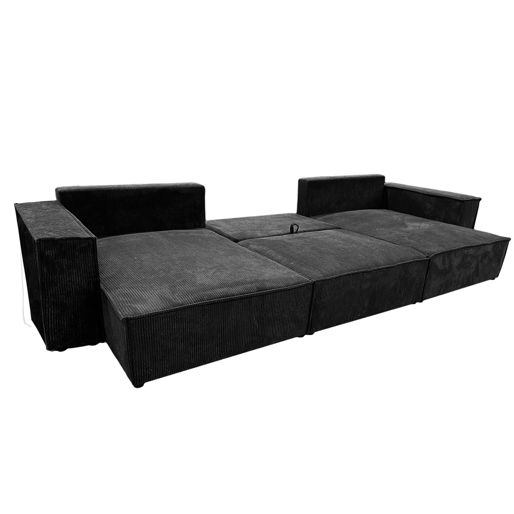 Narożnik rozkładany NOVU U funkcja spania z 3 dodatkowymi poduszkamisztruks automat pojemnik na pościel U-kształt CZARNY (1)