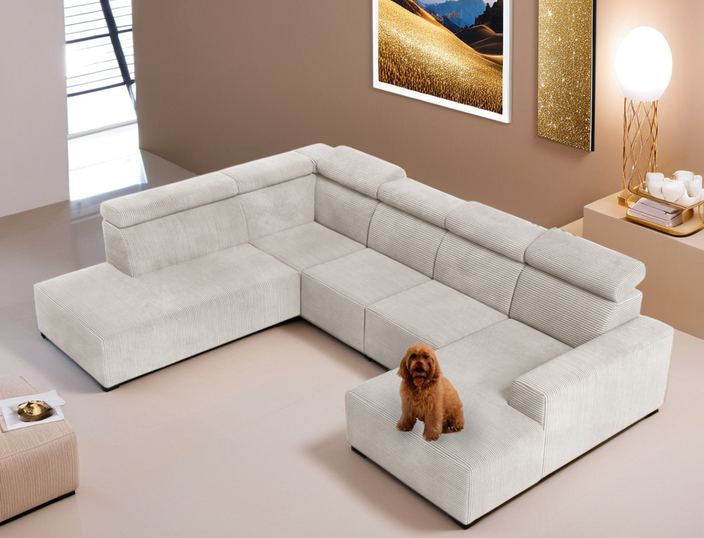 Nowoczesny duży narożnik z regulowanymi zagłówkami KLARA 5 U-KSZTAŁTNowoczesny, elegancki - ponadczasowy stylDzięki regulowanym zagłówkom Twój odpoczynek wkroczy na niesamowity poziom.