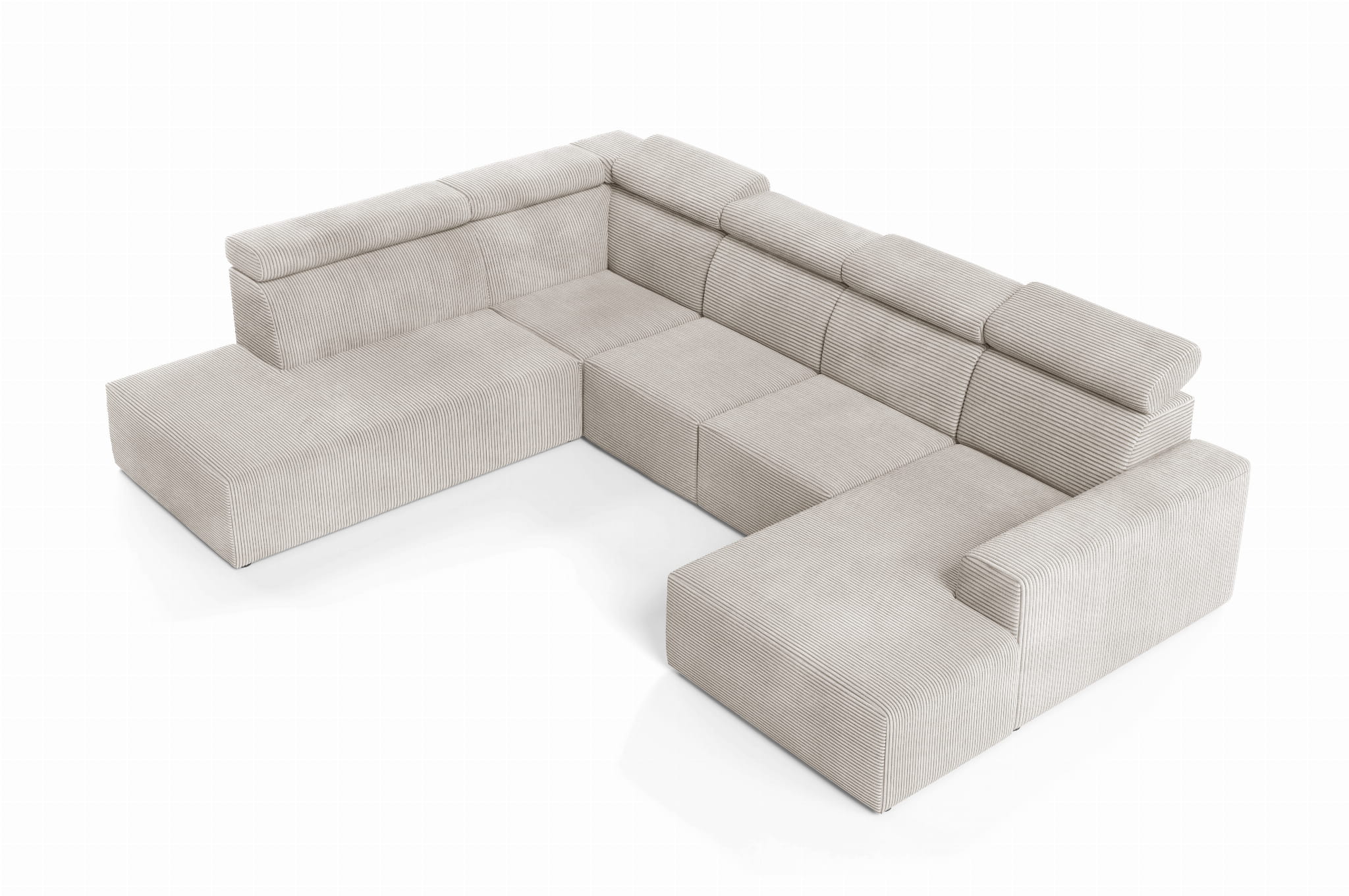 Nowoczesny duży narożnik z regulowanymi zagłówkami KLARA 5 U-KSZTAŁT