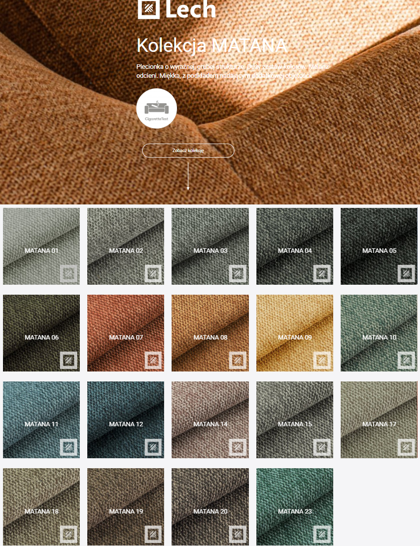 Dostępne tkaninyTkaniny są niezwykle miłe i miękkie w dotyku, a zarazem super odporne na ścieranie i padające światło, co sprawia że nadadzą się do każdego rodzaju wnętrz oraz zaspokoją wymagania nawet najbardziej wymagających użytkowników.