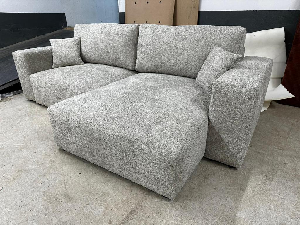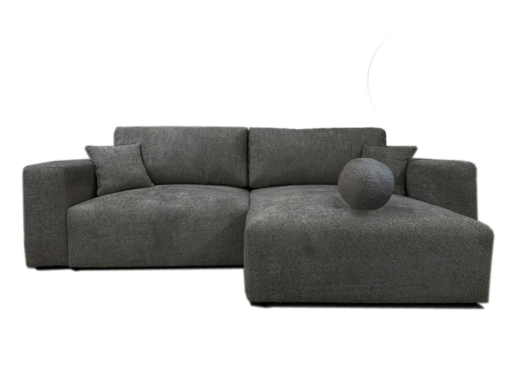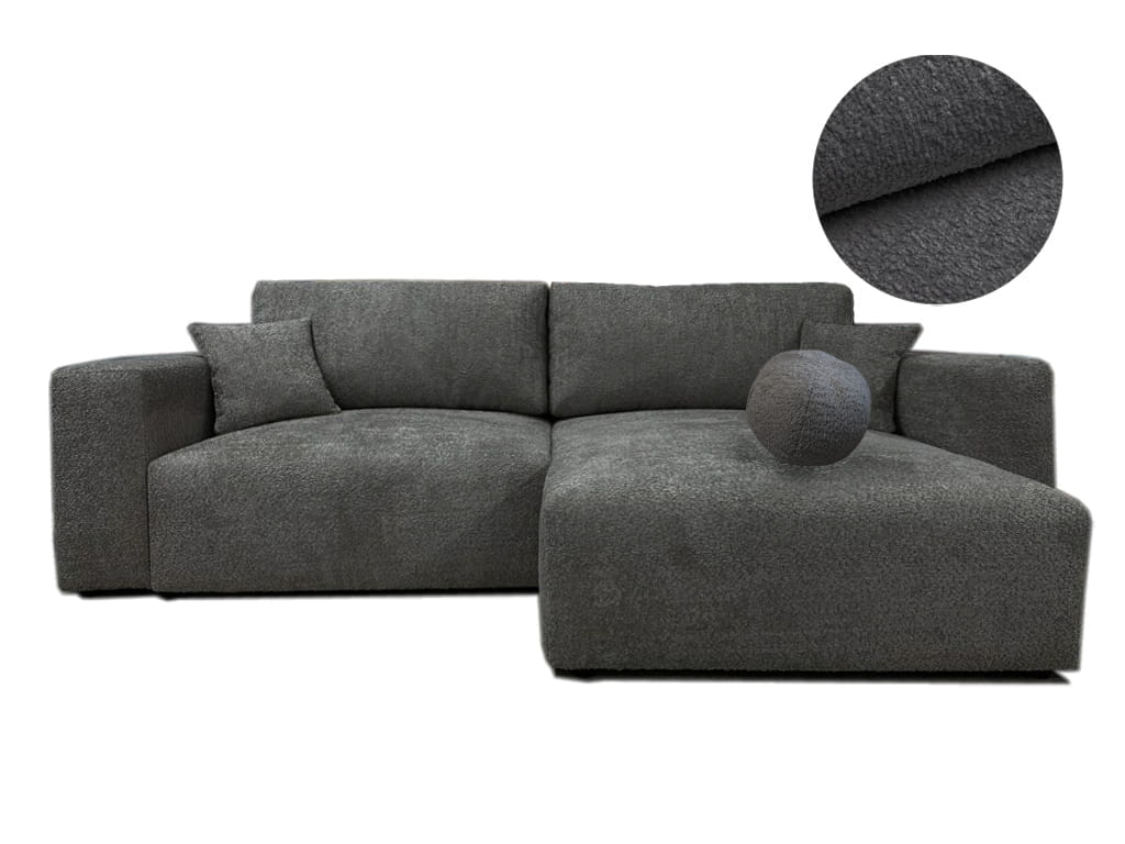 Nowoczesny narożnik rozkładany BAO funkcja spania BOUCLE BARANEK JAPANDI GRAFIT