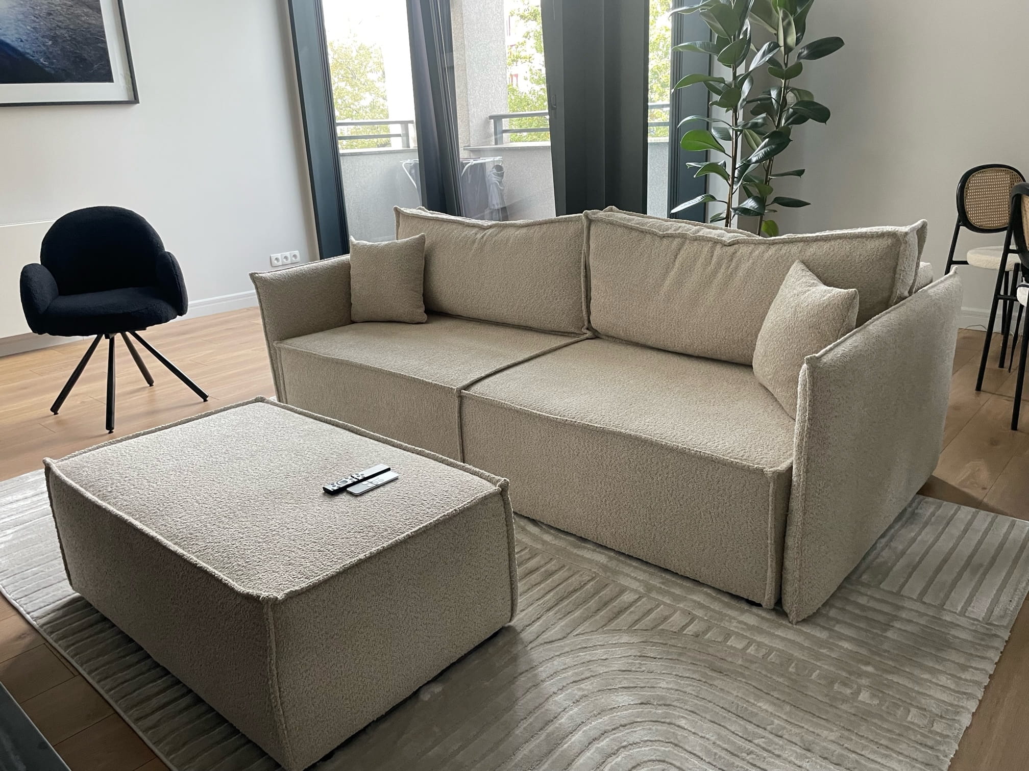 Pufa AMBER boucle baranek – pufa do salonu, podnóżek do kanapy, siedzisko