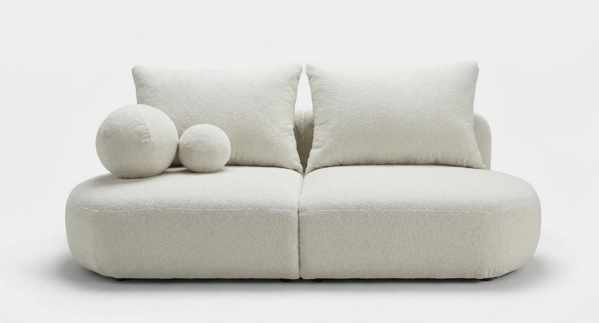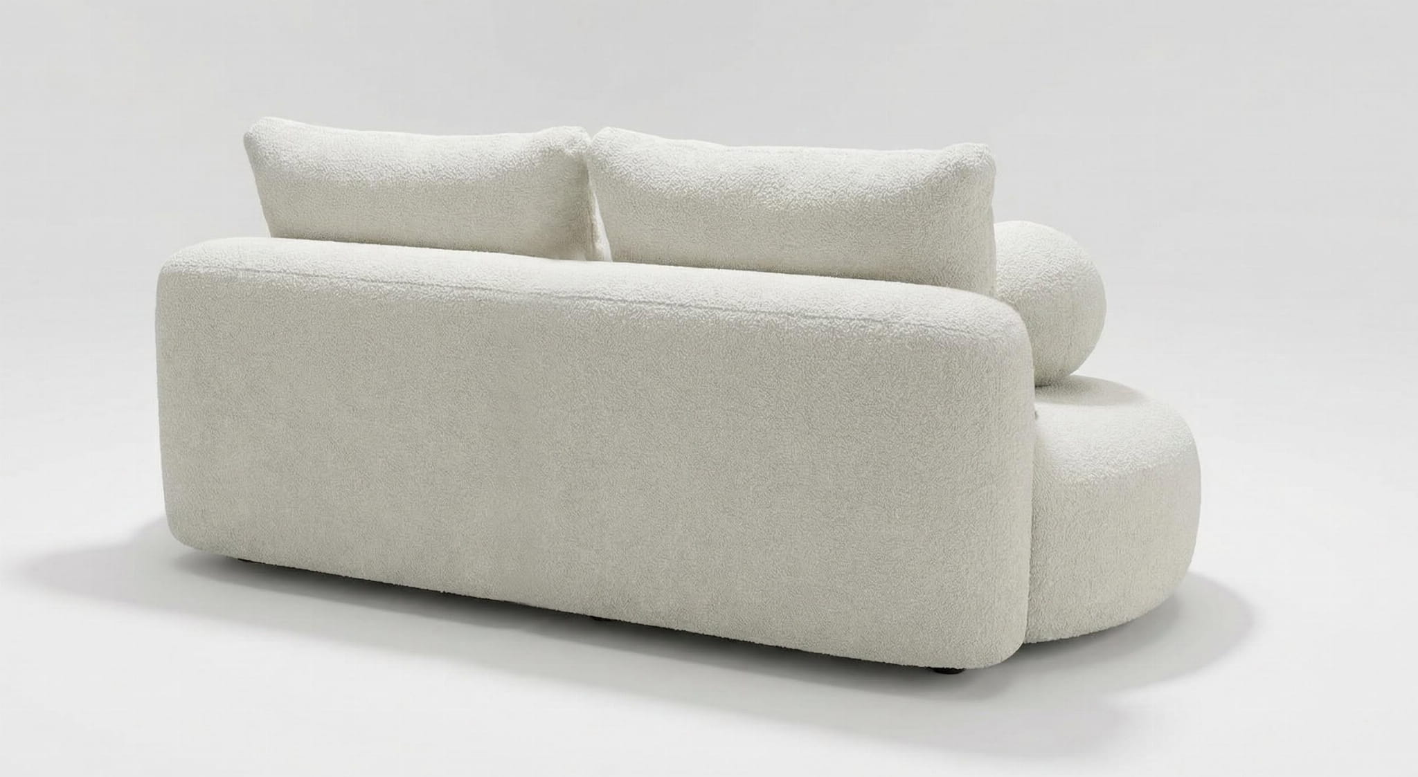 Elegancka i przyjemna w dotyku tkanina typu baranek, nadająca sofie nowoczesny wygląd. Dobrze sprawdza się w codziennym użytkowaniu.