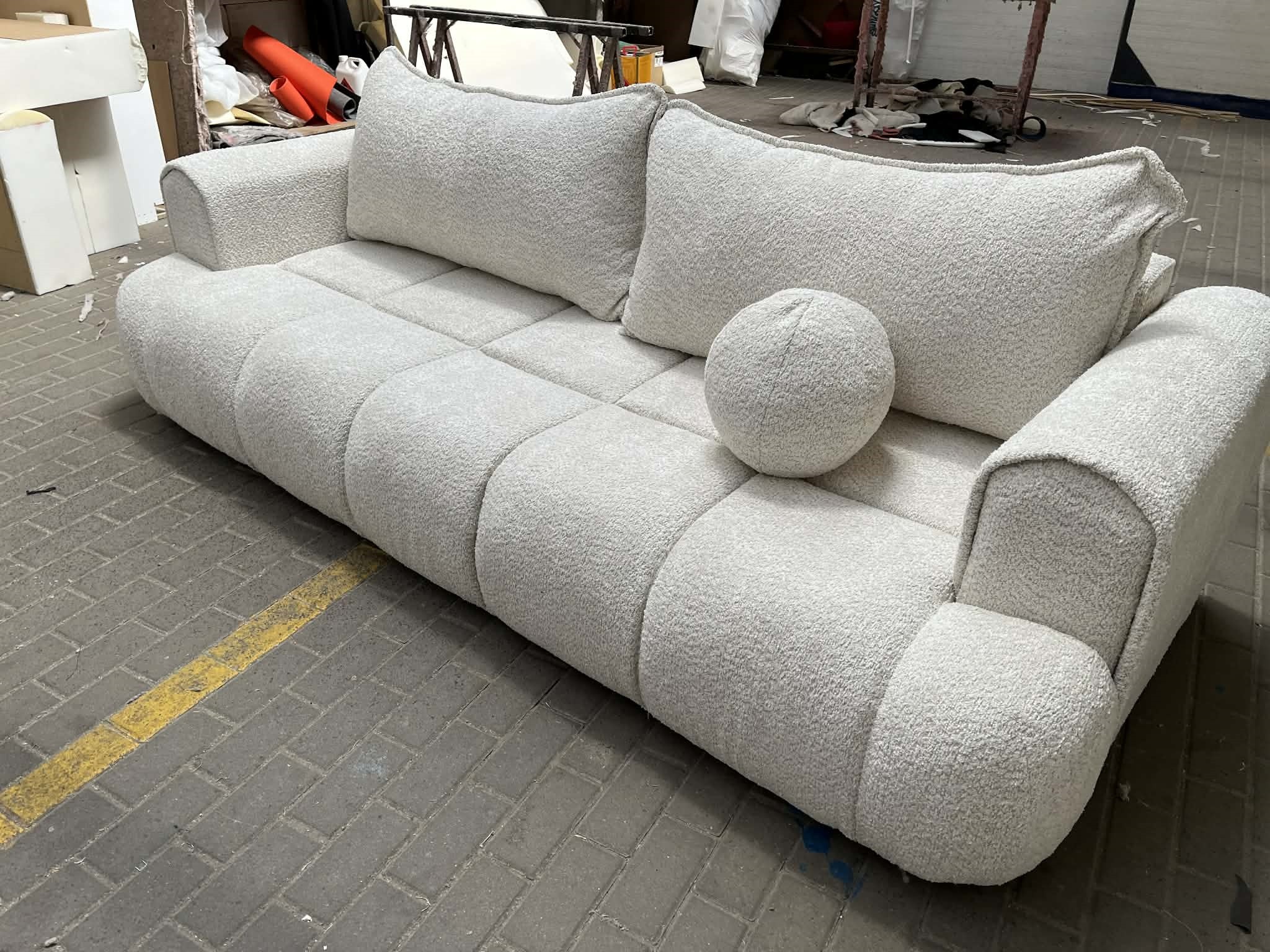 Sofa BADO 3-osobowa 250 cm bubble – kanapa rozkładana 200x150 z pojemnikiem, styl cloud